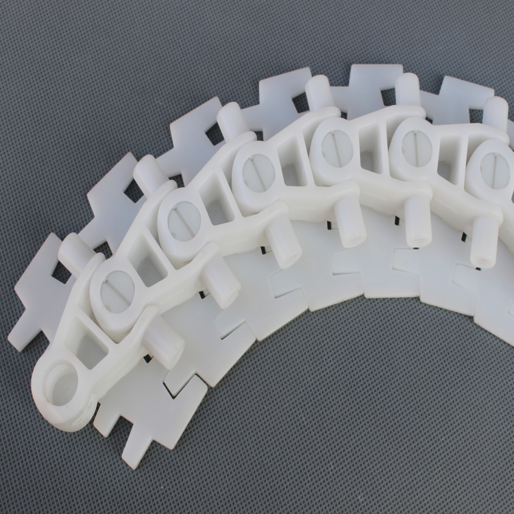 (1)輸送鏈:由白色、高強度工程塑制成??煞譃槠桨彐?、通用鏈、鋼頂鏈、楔形鏈、滾珠鏈、毛刷鏈、彈性鏈等。