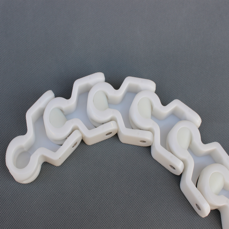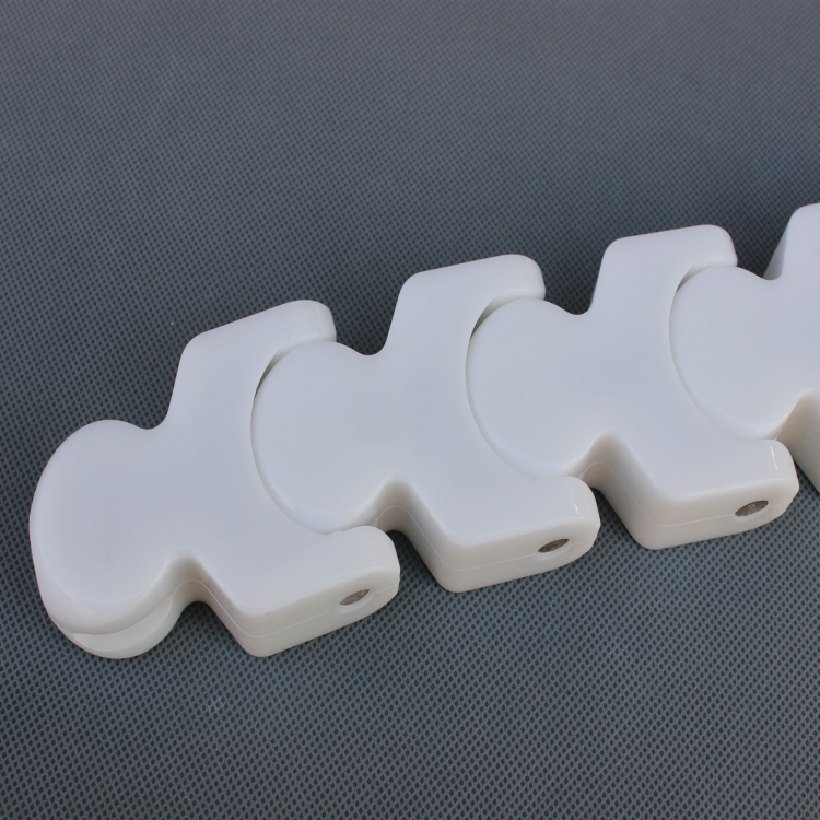 2.材質(zhì):鏈板材質(zhì):聚甲醛(POM),銷(xiāo)軸材質(zhì):冷軋奧氏體不銹鋼。