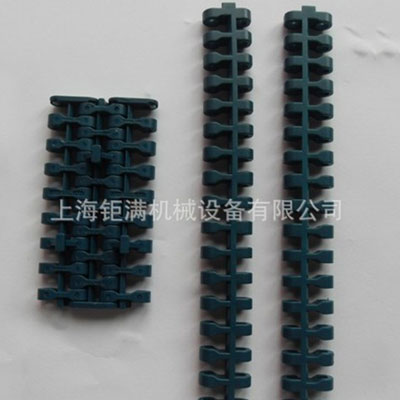 模塊式網(wǎng)帶用延伸在輸送帶整個(gè)寬度上的塑料鉸接銷,把注塑成型的網(wǎng)帶組裝成互鎖單元。這種方法增加了輸送帶的強(qiáng)度,并可以組接成任何需要的寬度和長(zhǎng)度。擋板和側(cè)板也可以用鉸接銷互鎖,成為塑鋼輸送帶整體部件之一。