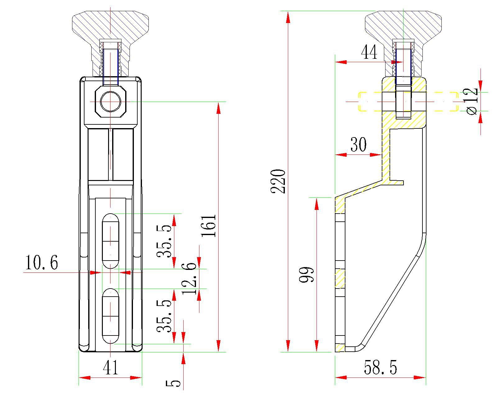 產(chǎn)品描述:尺寸參數(shù) 型號(hào)規(guī)格 型號(hào) 名稱 材質(zhì) 顏色 804 大支架 加強(qiáng)尼龍+銅 黑色