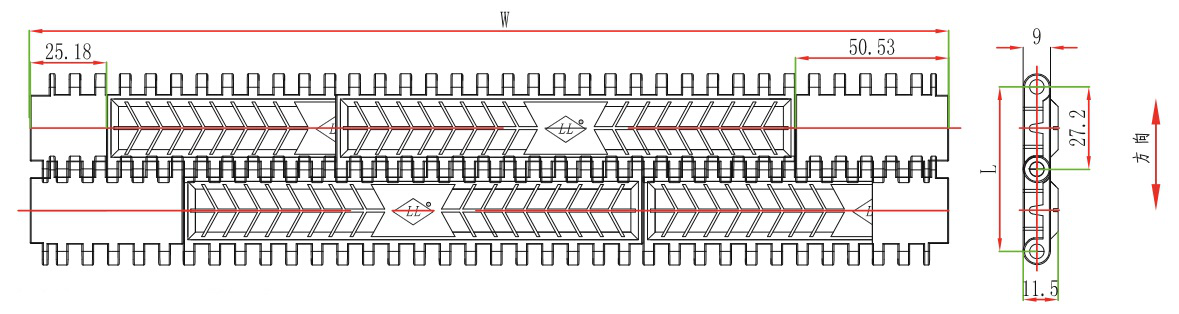 標(biāo)準(zhǔn)網(wǎng)帶寬度:W=152.4*N