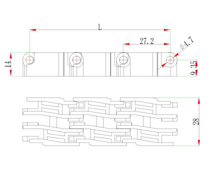 2.材質(zhì):網(wǎng)帶材質(zhì):聚甲醛(POM);銷軸材質(zhì):聚丙烯(PP)
