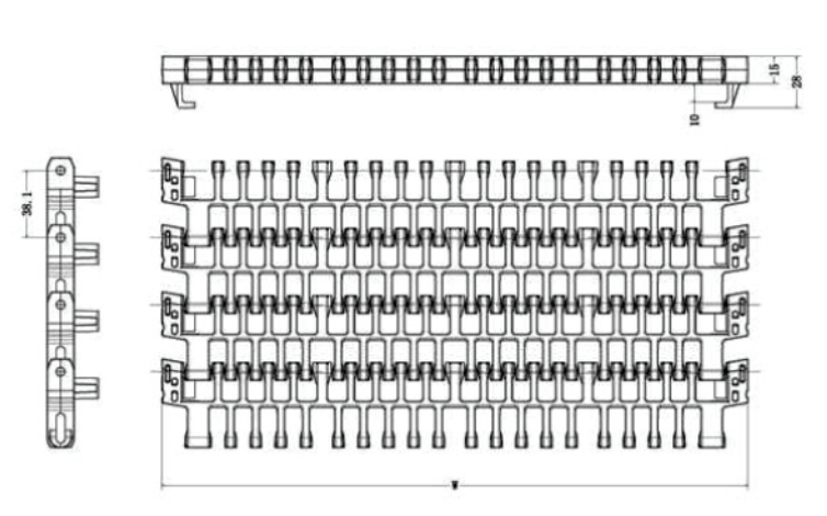 2.材質(zhì):網(wǎng)帶材質(zhì):聚甲醛(POM),銷軸材質(zhì):聚丙烯(PP)